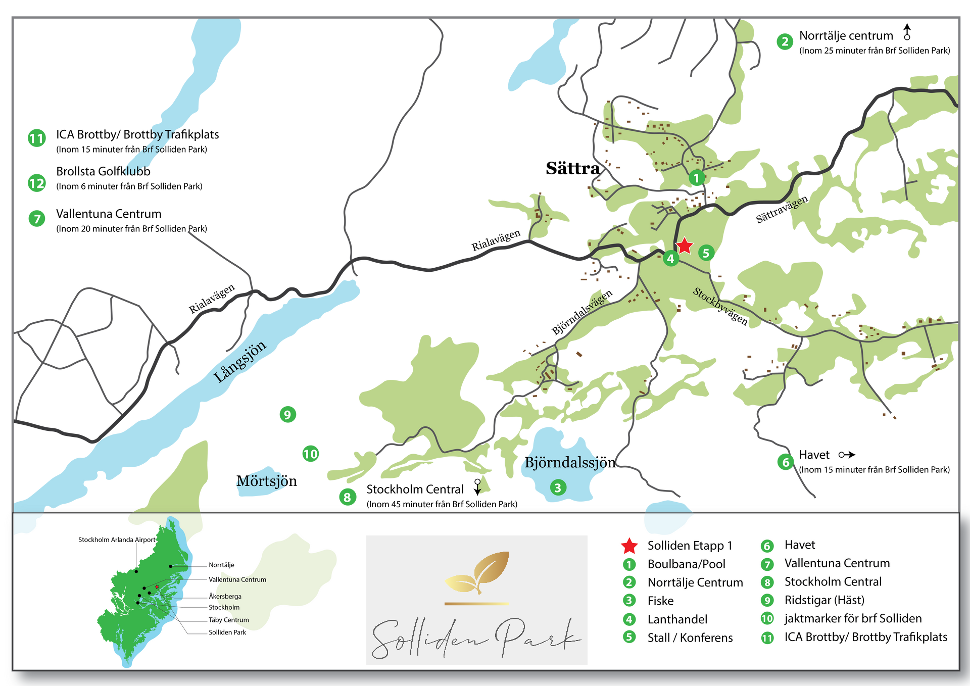 Brottby ICA (15 min) I Brollsta golfklubb (6 min) I Vallentuna (25 min) I Norrtälje (25 min) I Stockholm Central (45 min)