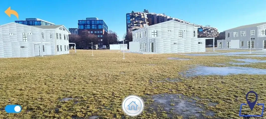 I den världen kan du gå runt bland husen. Detta material är främst framtaget inför försäljningen, men den kommer även att vara tillgänglig för dig som boende.